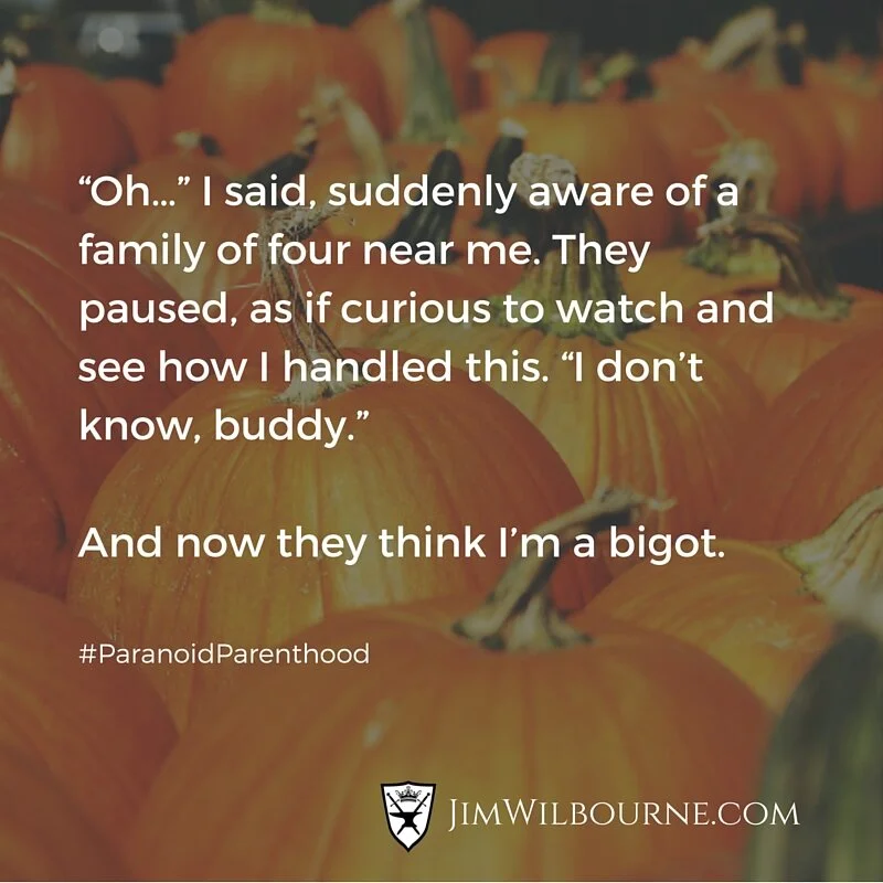 “Oh…” I said, suddenly aware of a family of four near me. They paused, as if curious to watch and see how I handled this. “I don’t know, buddy.”